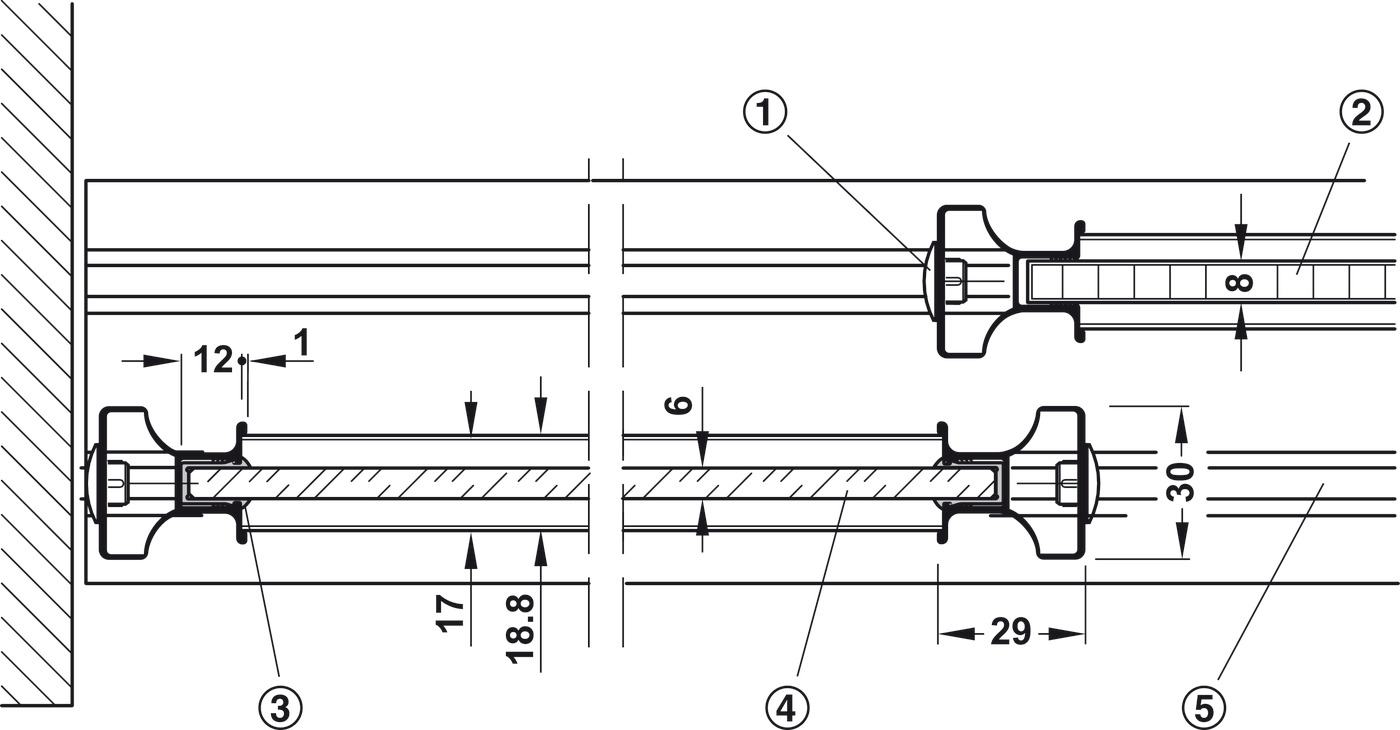Panel thicknesses 4-5 or 6-6.3 mm with clip-on profile or 8 mm without, compensates for uneven areas on floors and ceilings up to -5/+6 mm