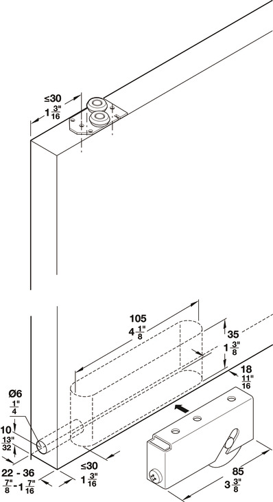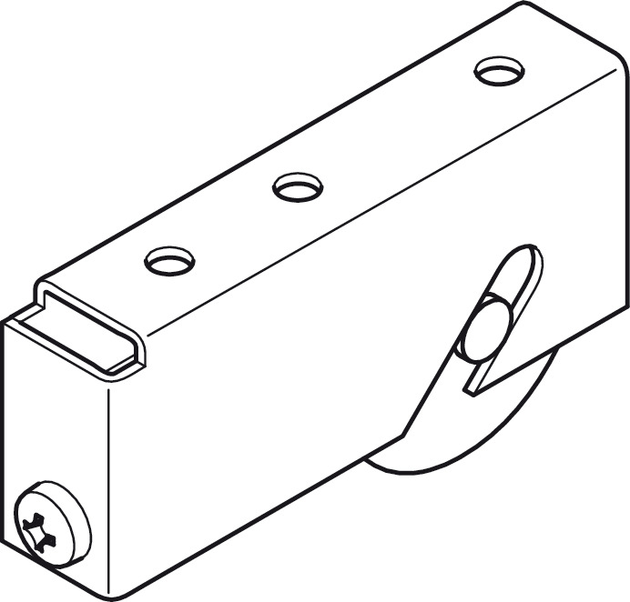 Installation reference: The roller is inserted from below and screwed to the door leaf through the middle hole.