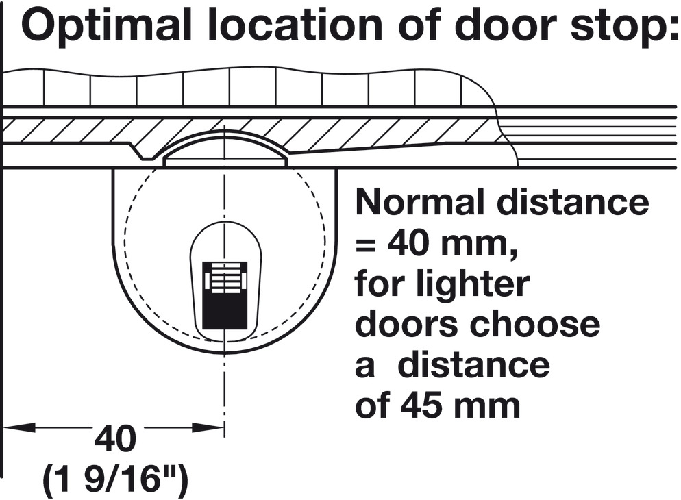 Installation: The door stop should be inserted into the guide track before guide track is pressed into groove, (order separately)