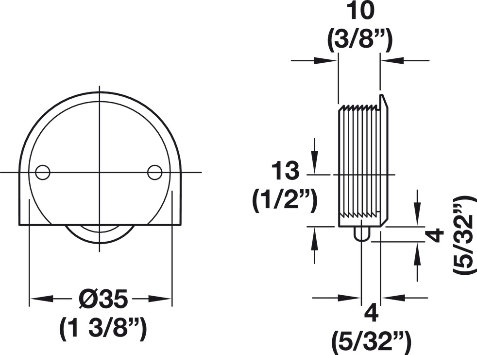 Hafele 251.79.600 Nickel Plated Door Stop Bracket w/ Bumper - 1 Pkg.