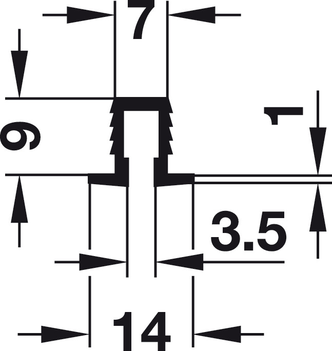 Installation: For press fitting and gluing into groove. Includes flanged edges and barbed shoulders.