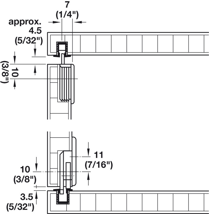 Guide track is designed to be used both at the top and bottom of the cabinet