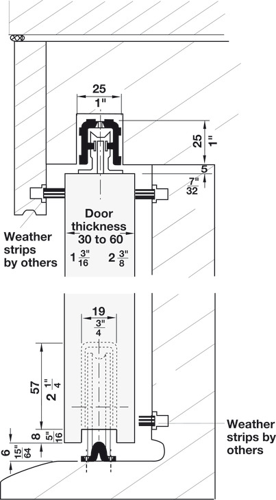 Weight of sliding door must be carried on top of casing above the wheel