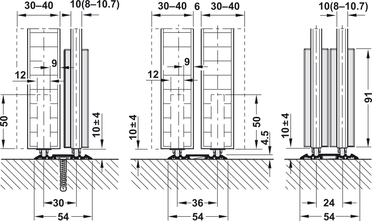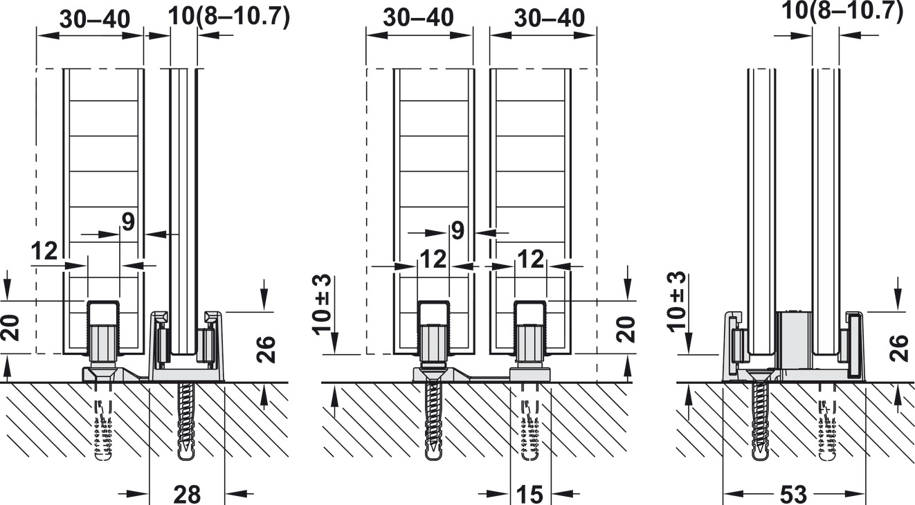 - Please order running and guide track, guide, fixing set, door buffer set, sealing profile, centring door stop and cover caps separately.
