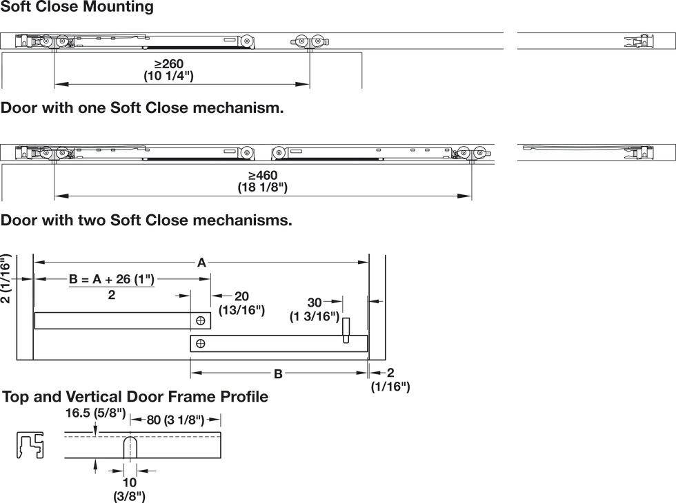 Please order one soft closing mechanism for each door for soft opening and soft closing action separately with pitch lengths of running gears from 460 mm and above.