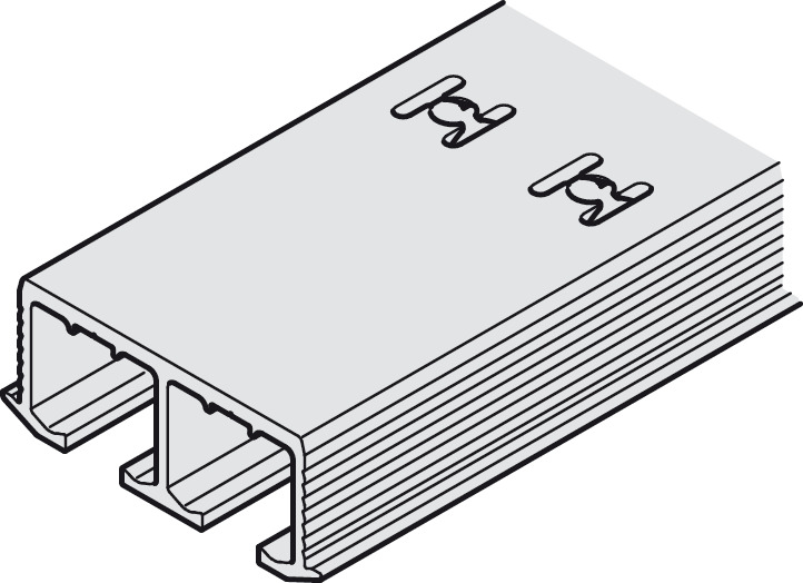Hafele 405.02.622 Double Running Track, Perforated, for Hawa Clipo, 8' 2 7/16" Length, Aluminum, Silver Colored, Anodized