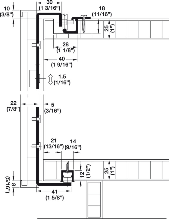 For door height: max. (86 5/8") 2200 mm