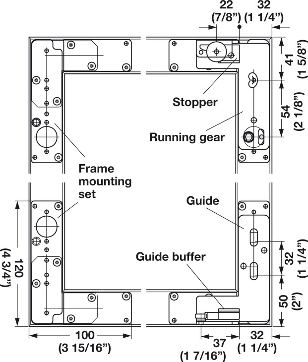Installation: Running gear and guide for screw fixing
