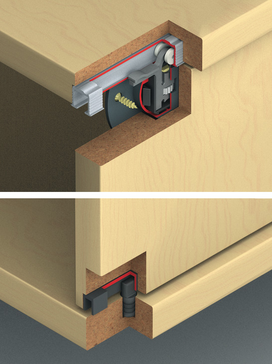 • Door stopper: Top stopper, with retainer for sliding into single top running track