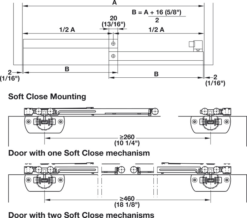 Soft closing mechanism on one side is possible from pitch length of min. 260 mm, both sides from 460 mm