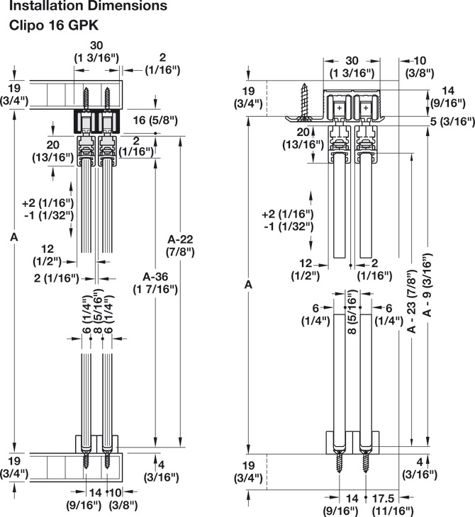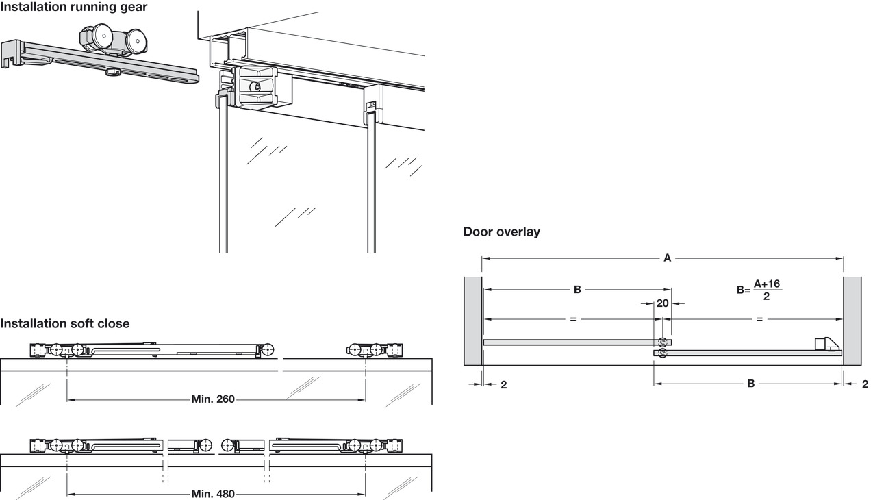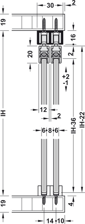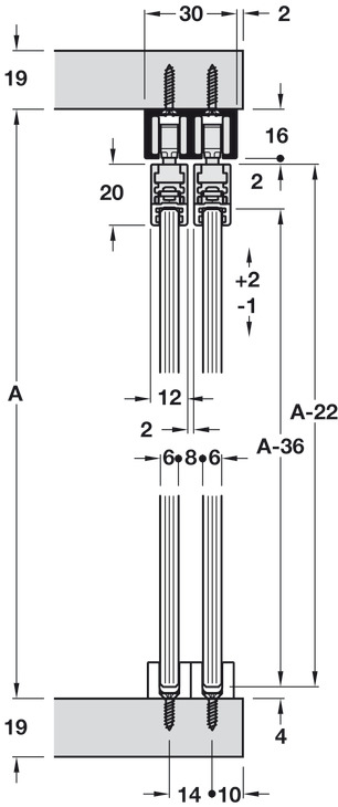Sliding Door Hardware, Top, for screw fixing: