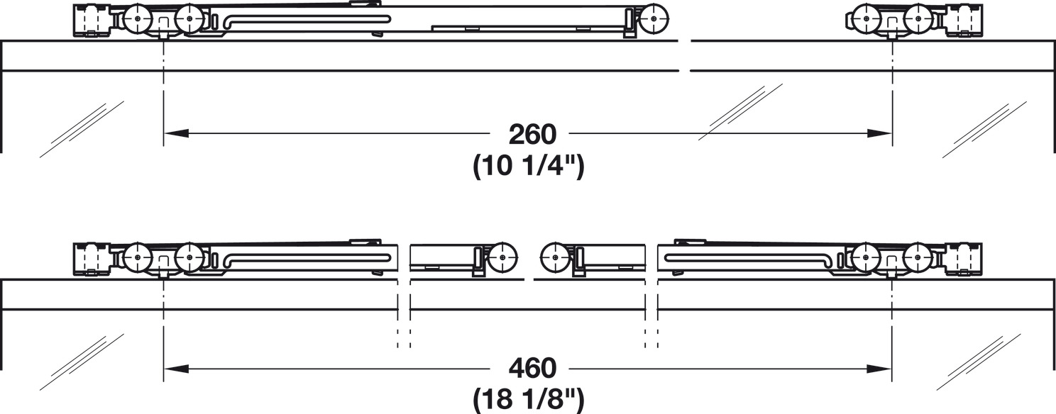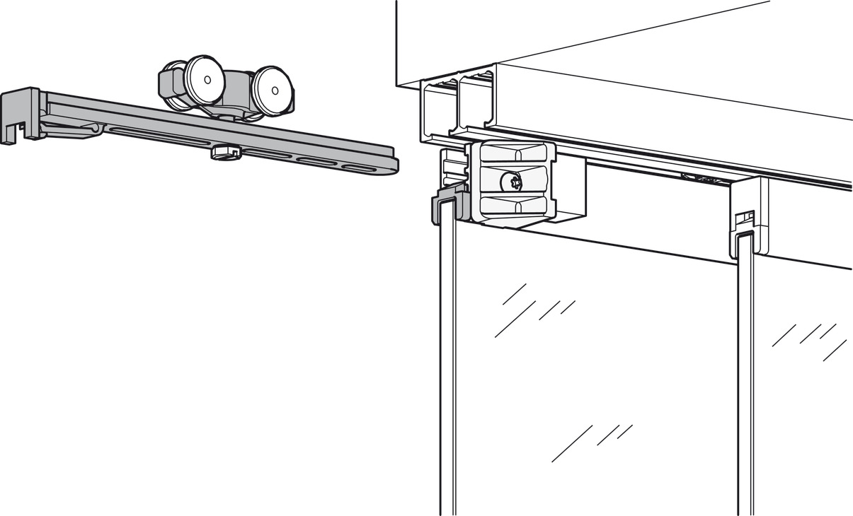 Hafele 405.82.290 Sliding Door Hardware, Hawa Clipo 16 GPK IF, Glass Fixing Profile is not Required on the Bottom of the Door, Plastic, 1 Set