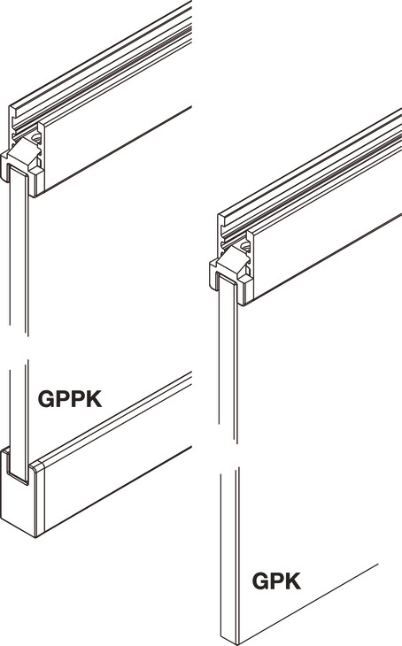 Please order running tracks, guide tracks and glass fixing profiles (GPK: top, GPPK: top and bottom) separately.