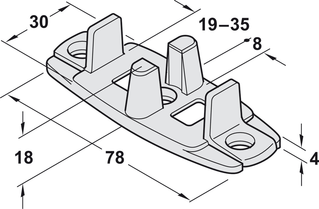 Hafele 407.01.951 Double Guide, for Screw Fixing, 2' 1 19/32" Length, Plastic, Natural Color, Box of 2 Pieces