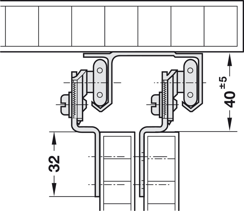 Hafele 407.14.903 Double Running Gear, For Hangar Infront, For Top Hung, Wood Sliding Doors, Steel, Yellow