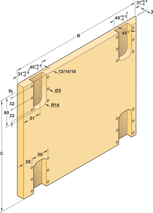 For material thickness: = (3/4") 18 mm