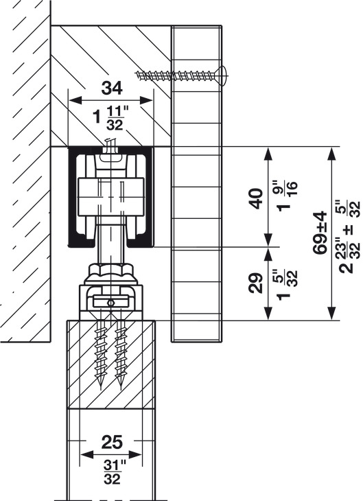 Hafele 407.59.180 Complete Set With Track, Hawa Junior 80Z, 5' 10 7/8" Length, Door Width Up to 35 7/16", 1 Set