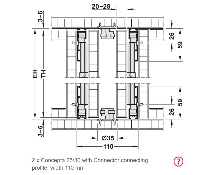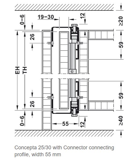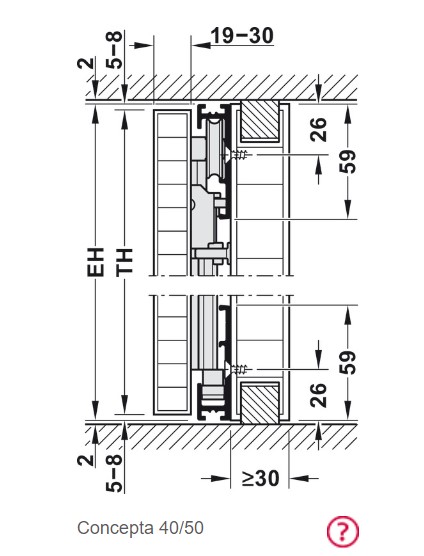 Hafele 408.30.046 Wooden Pivot Sliding Doors, Hawa Concepta 30 Set, Infront/Vorfront, 6' 7/8" - 7' 6-9/16" for Door Height, Model 30, Plastic Coated