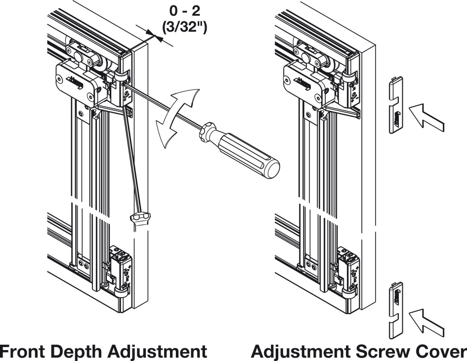 All adjustments are made from the front of the cabinet