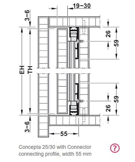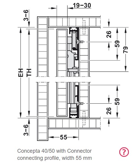 For door thickness: 19 – 30 mm