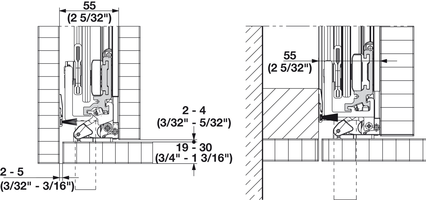 Door Thickness: Straight edge: 19 - 30 mm (3/4" - 1 3/16") Rabbeted edge: >30 - 50 mm (>1 3/16" - 1 15/16")