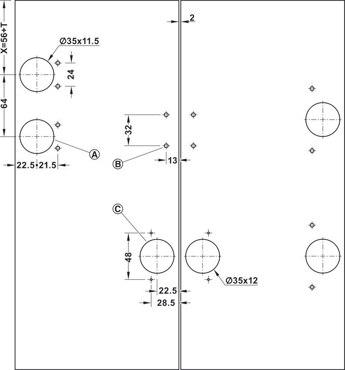 Hafele 409.36.033 Sliding Door Fitting, With Standard Center Hinge, 55 lbs. Door Weight Max., Right Mounting, 1 Set
