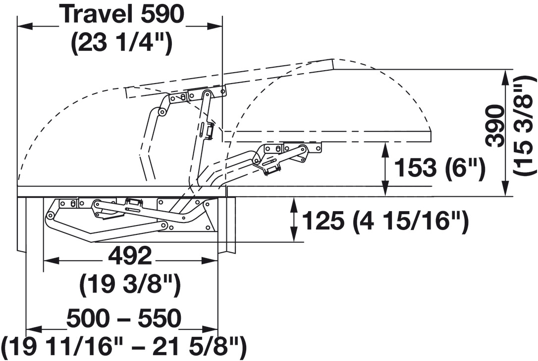 Hafele 409.43.710 Lateral Opening Door System, Set, FAD-20, 44 lbs Door Weight, 19 11/16" - 21 5/8" Internal Cabinet Width, 1 Set