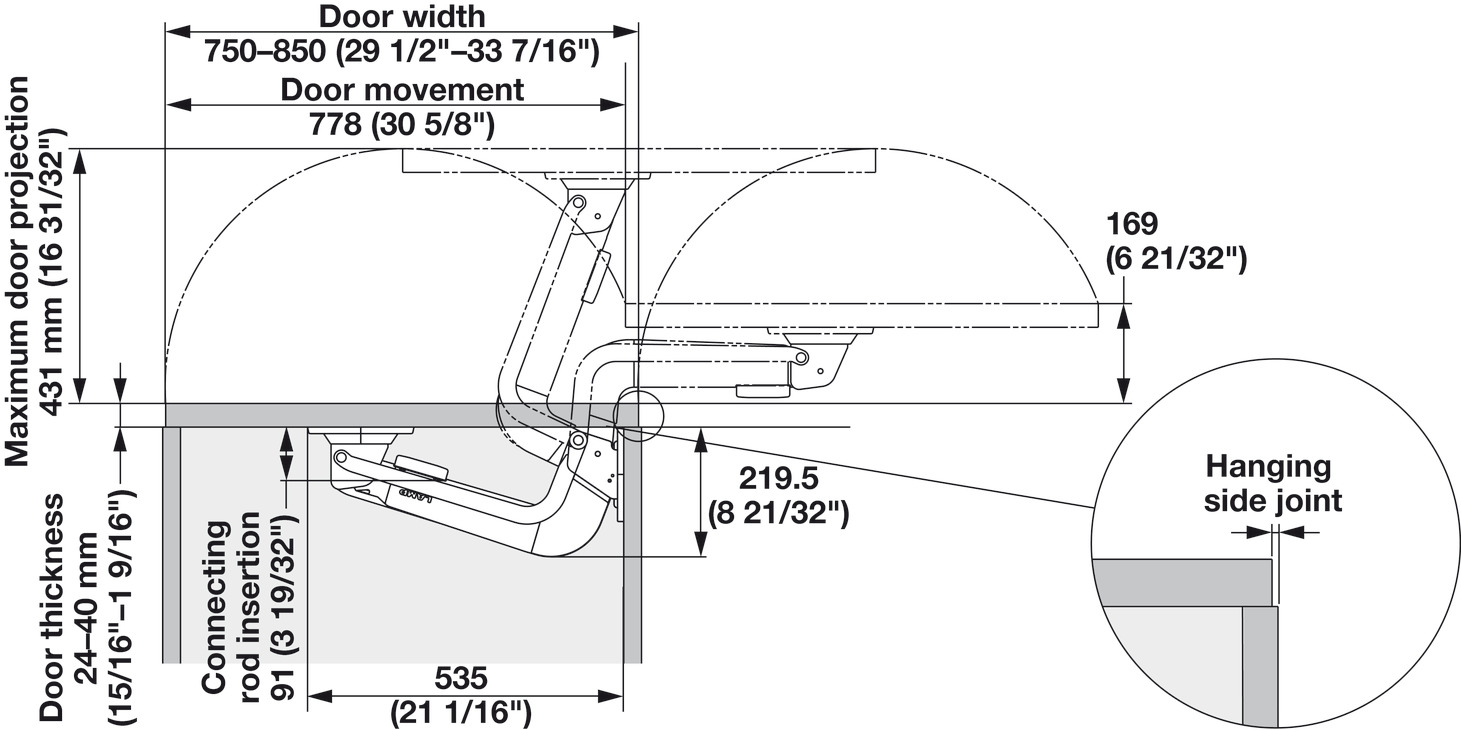 Drawer width max.: 33 7/16"