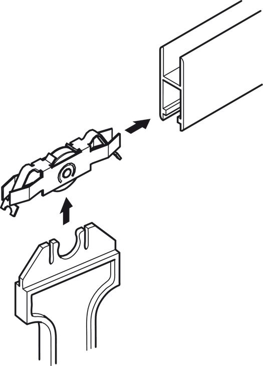 Hafele 415.13.104 Running Gear, Häfele Slido F-Line14 25A, Infront, 2' 1 19/32" Length, for Sliding in and Tightening, Steel, Zinc