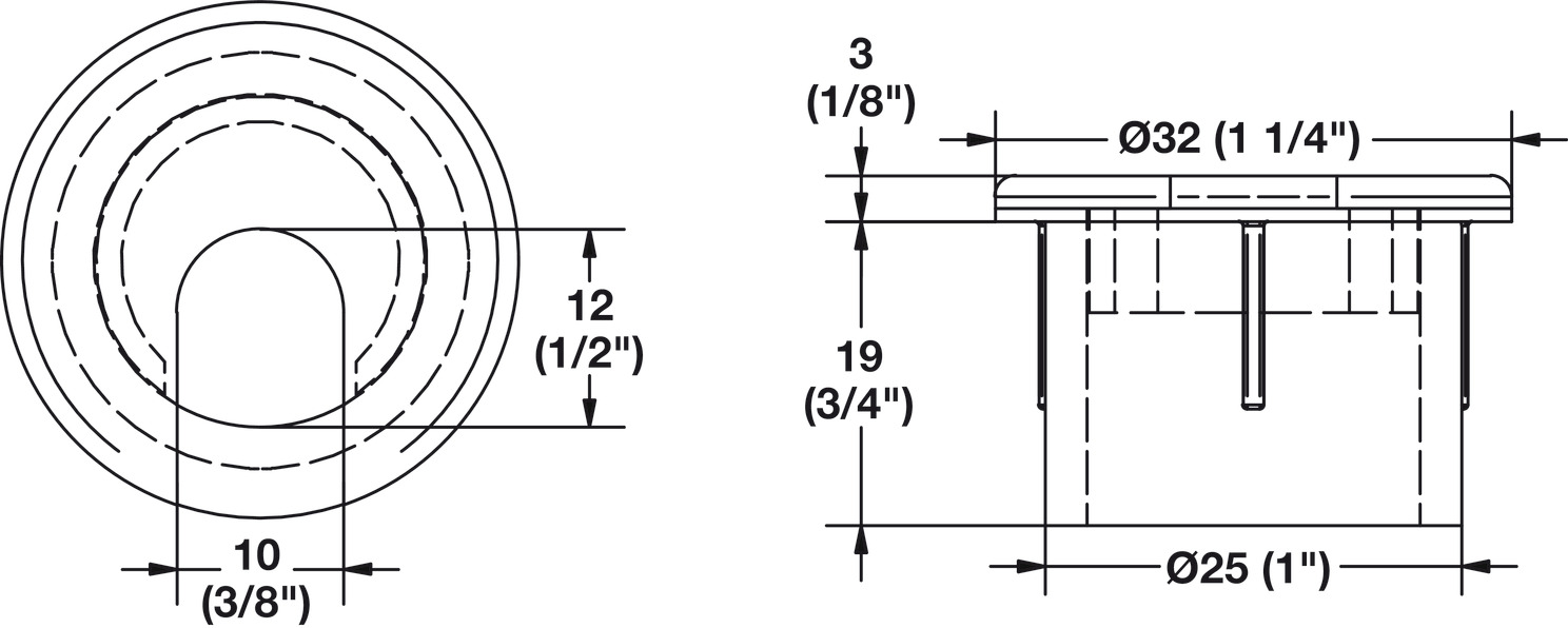 Hafele 429.99.766 Grommet, Press-Fitting, 1" Drill Hole, Plastic, White