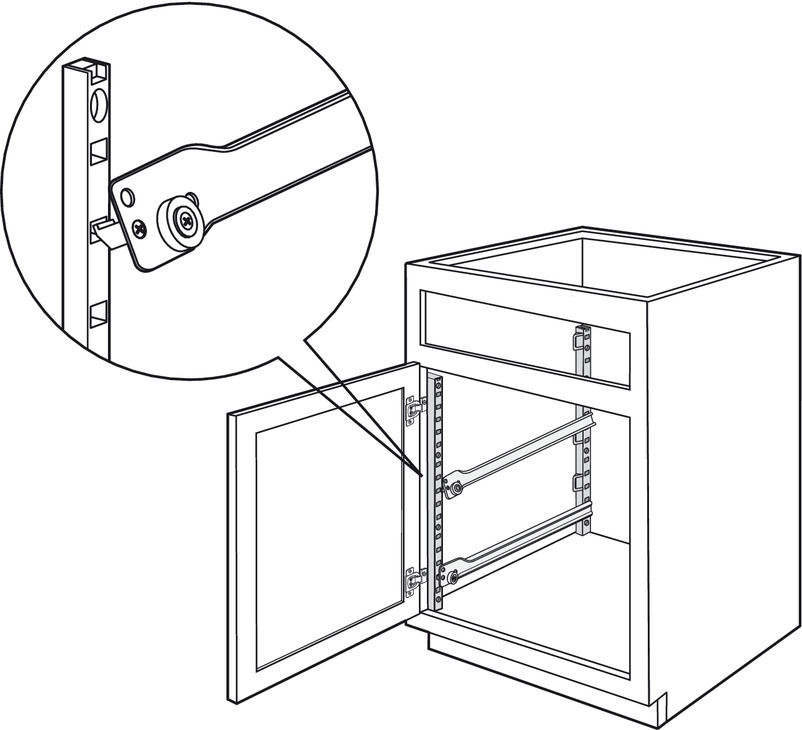 2.Tilt up drawer slide to disengage hook dowel and remove from support.