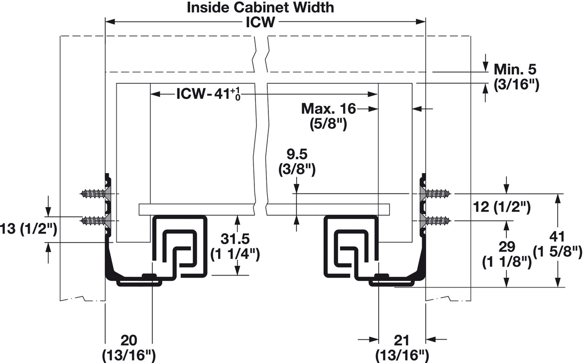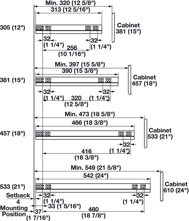 Hafele 433.17.730 Salice, A7555 Futura 16 Slide, Full Extension, 305 mm (12") Drawer Box Length, Steel, Zinc, 1 Pair