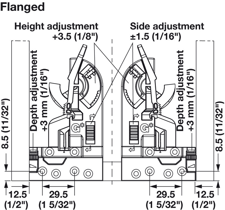 Suitable for: Drawer materials 1/2" (13mm) up to 3/4" (19mm)