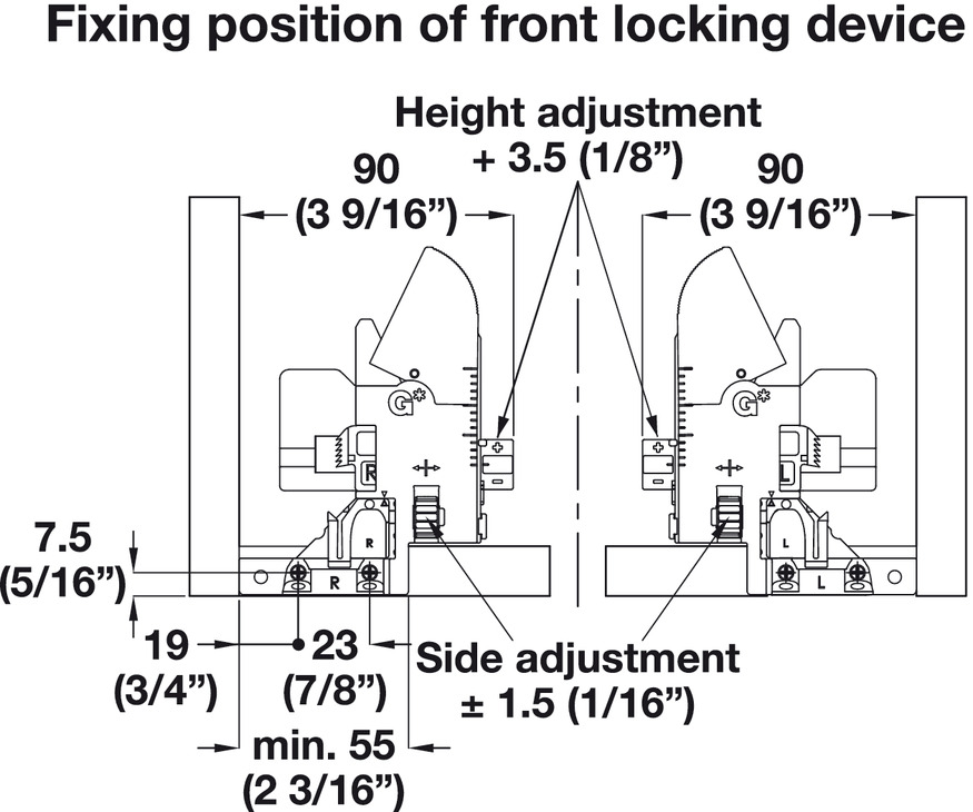 Hafele 433.19.043 Front Locking Device, 2-D, Dynapro, Left, Steel, Zinc, 200 Pieces