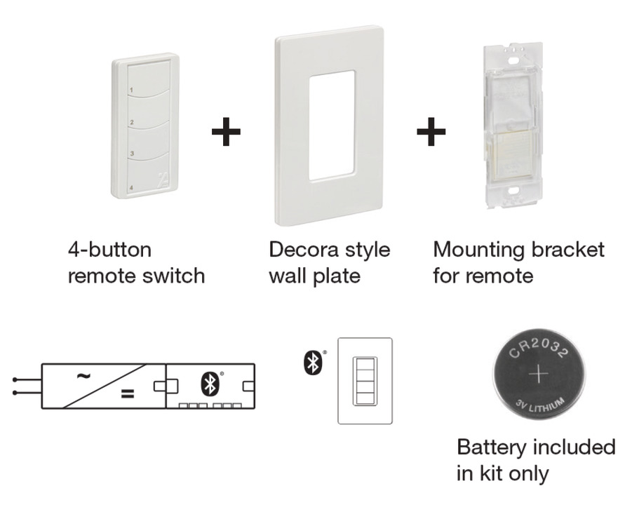 Version: 4-button remote with wall plate, mounting bracket and battery