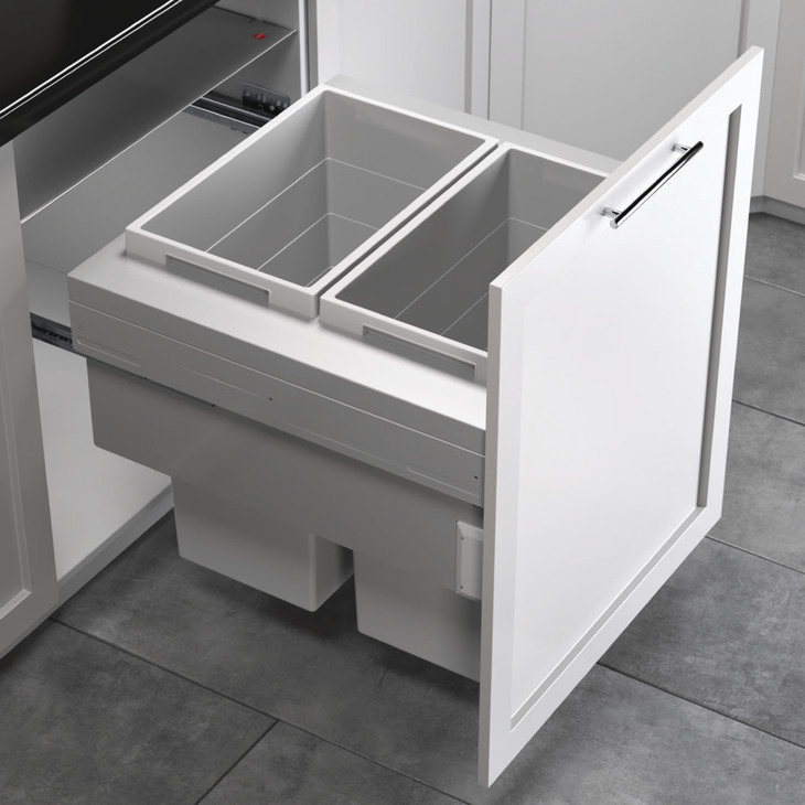 Hafele 502.77.534 Waste Bin Pull-Out, Hailo US Cargo 24 FL, Full Access, Set of 2 x 44.4 qt Bins, Steel/Plastic, Silver/Light Gray