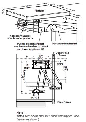 Having said that, the manufacturer and I did discuss that they have tested it with the Kitchenaid appliance that is seen in the stock image photograph and that if your appliance does not exceed the height and depth of that appliance they've assured me that it would not be necessary for you to be concerned about exceeding the maximum height limitation of the hardware itself.