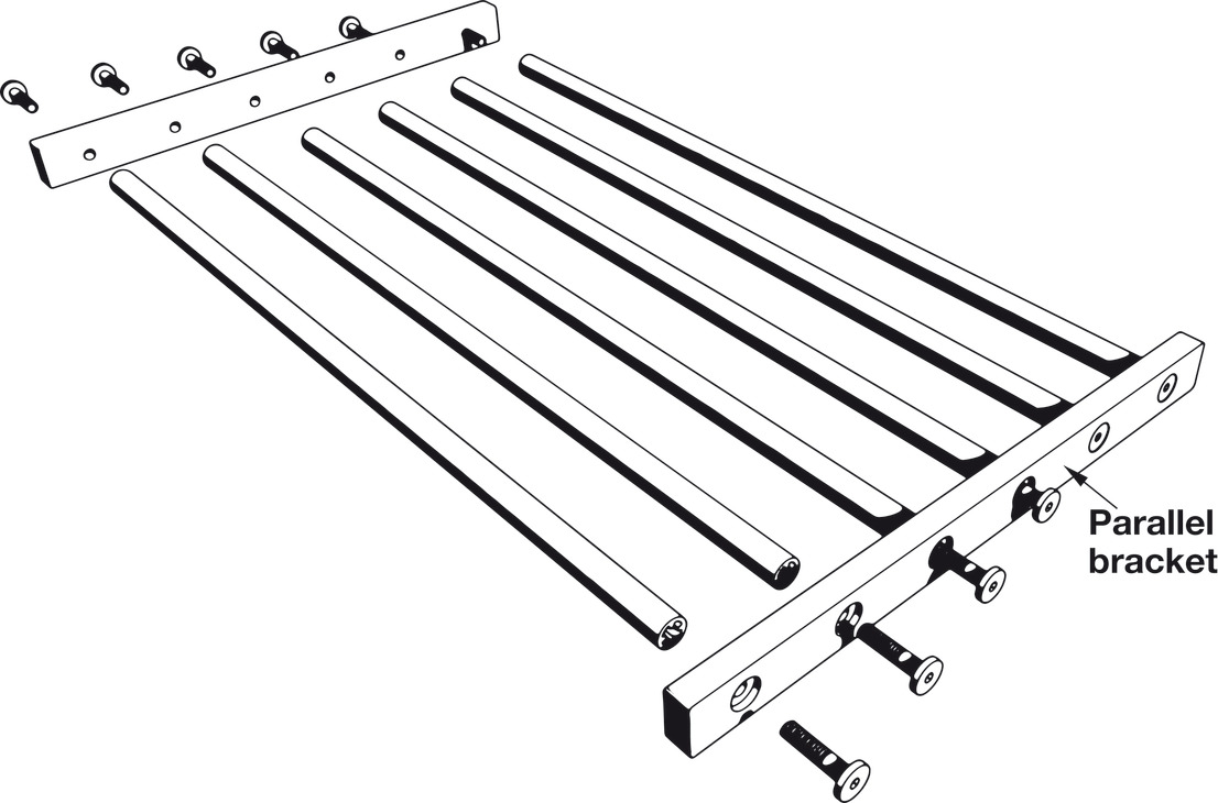 Note: The parallel rods attach to the brackets to create a ventilated shelf