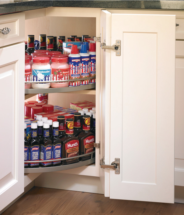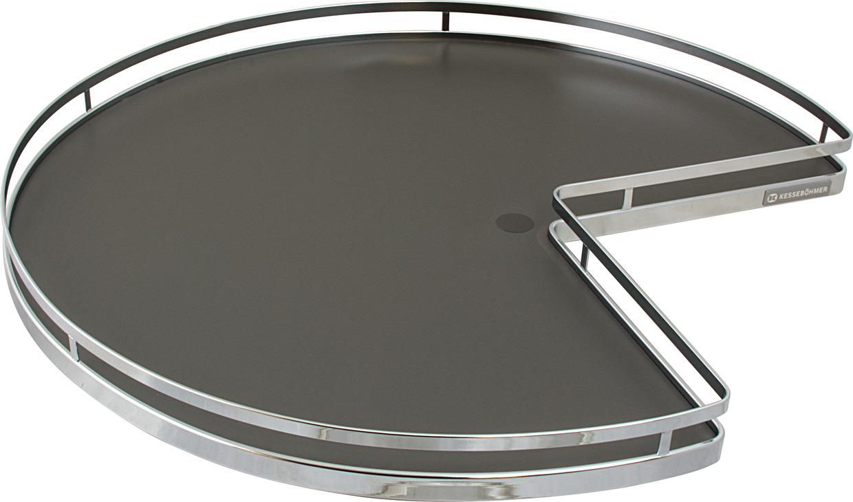 Hafele 541.06.267 Super Susan, 3/4 Round Pie-Cut Revolving Shelf, 32" Diameter, Melamine/Steel, Chrome/Anthracite, Box of 2 Pieces