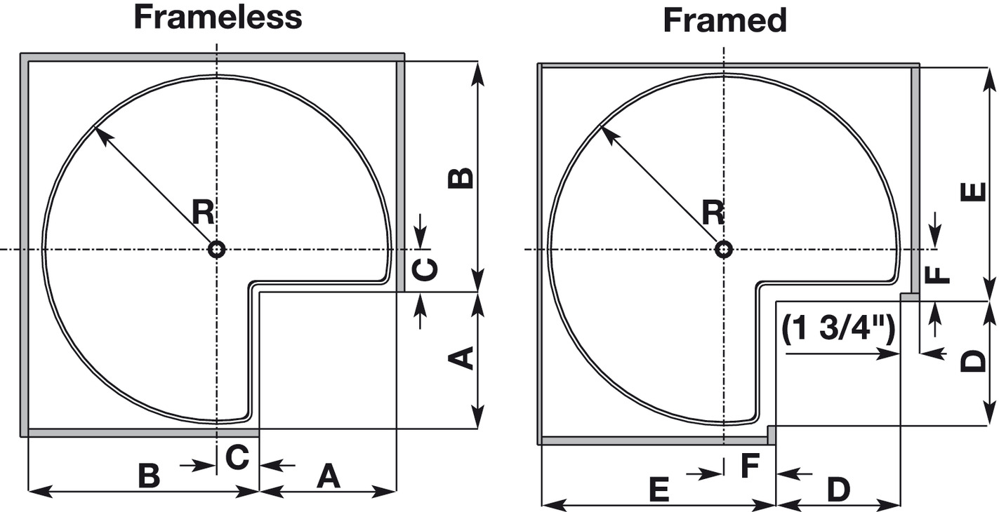 The 32" version will fit in a 36" pie-cut corner cabinet.