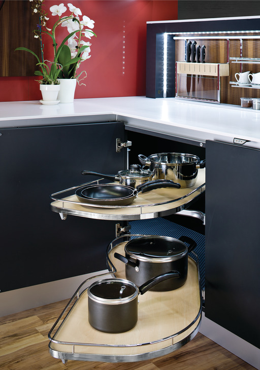 Hafele 541.28.345 Lemans II, For Blind Corner Cabinets, Swings Right, Model 45, Melamine/Steel, Chrome/Anthracite, Box of 2 Sets