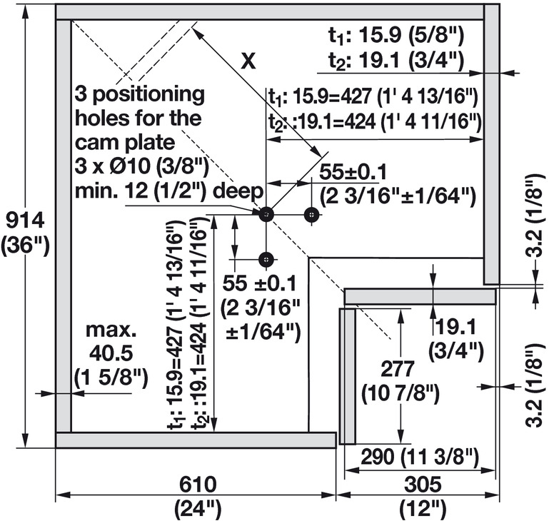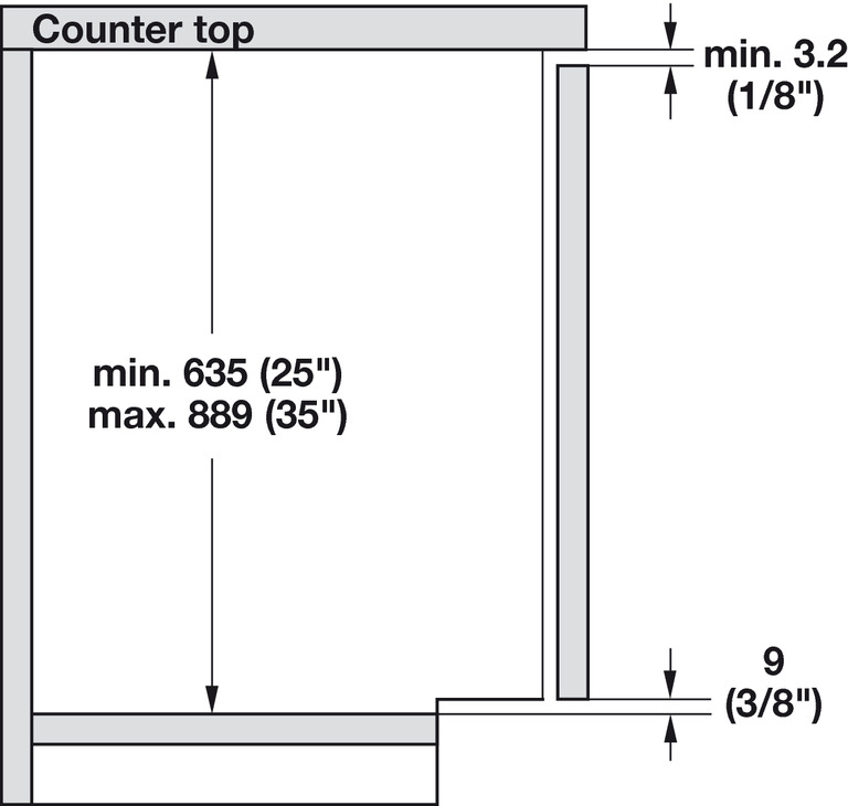 Order reference: Please note that the cabinet bottom must be positioned lower if the door height is to match adjacent cabinetry.