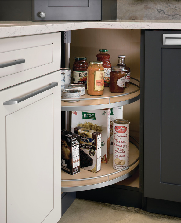 A classic revolving design with a twist, these shelves offer ample storage and close on their own