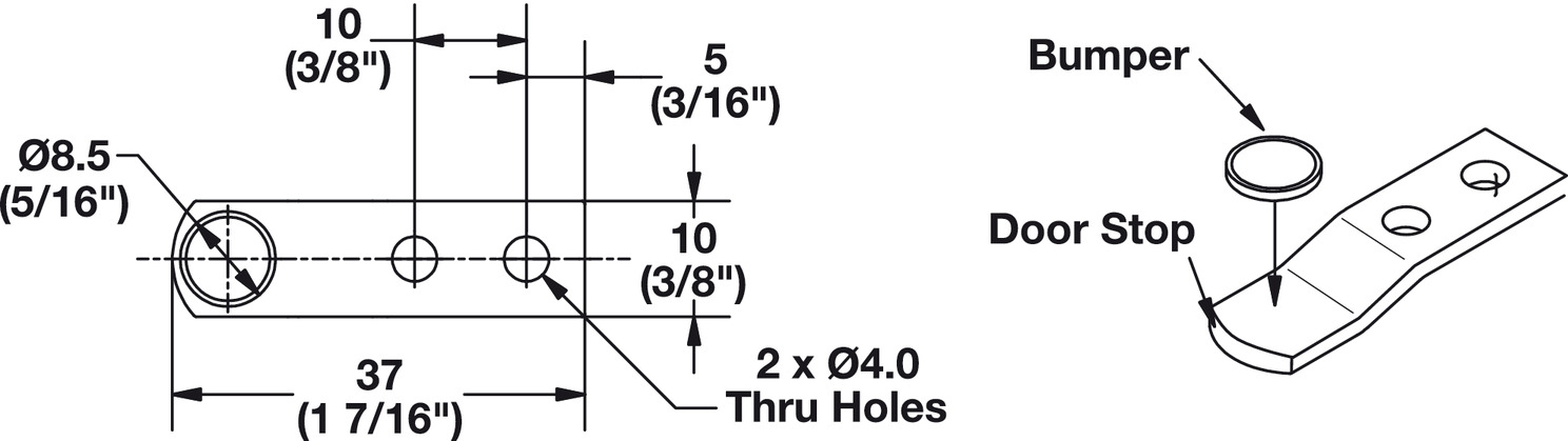 Hafele 251.79.600 Nickel Plated Door Stop Bracket w/ Bumper - 1 Pkg.