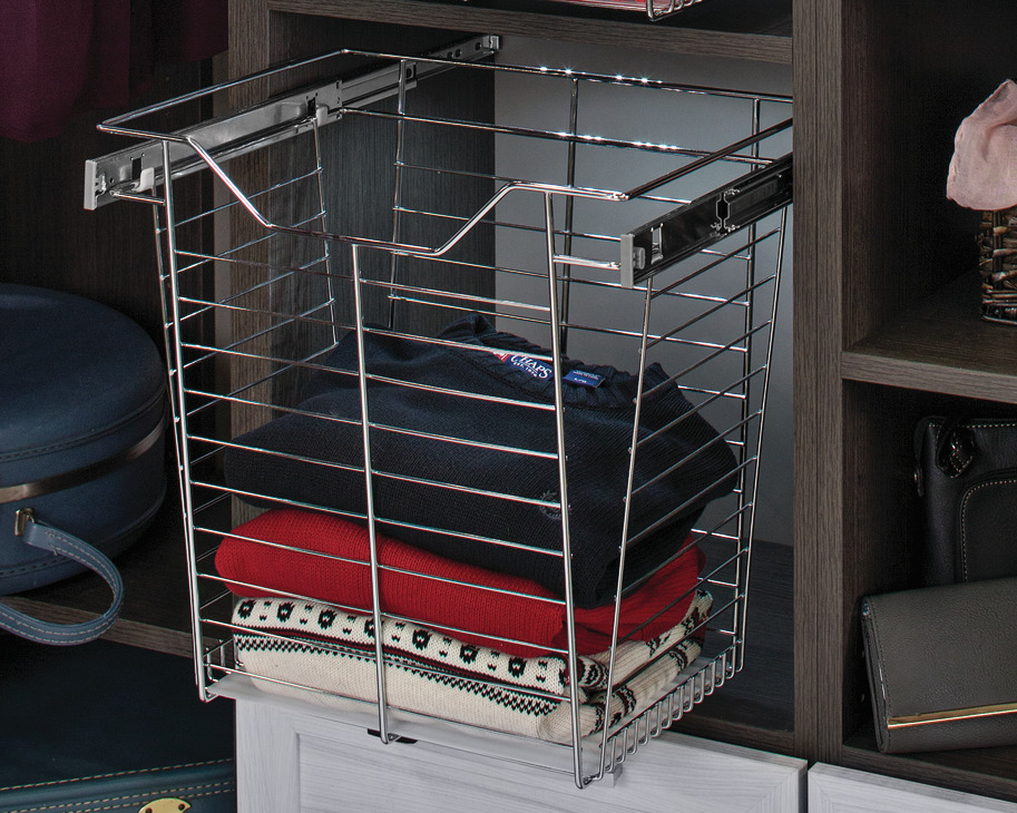Hafele 547.38.332 Wire Closet Basket, with Full Extension Slides, 14" x 17" x 6", with 14" Slides, Steel, Black, Set