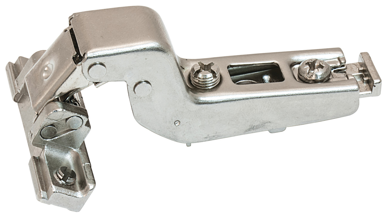Hafele 563.25.947 Aluminum Frame Door Hinge, H-Series, 110° Opening Angle, Clip-On, Self Closing, Insert Overlay, Nickel-Plated