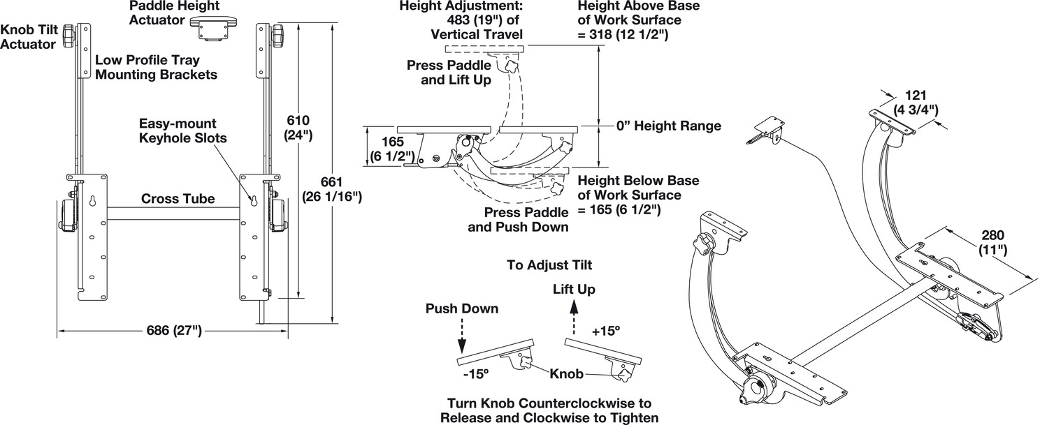 Hafele 632.68.340 Keyboard Arm, Duet 27" Sit-to-Stand, Black