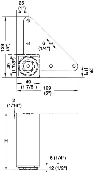Mounting plate allows feet to be mounted flush with corner of cabinet