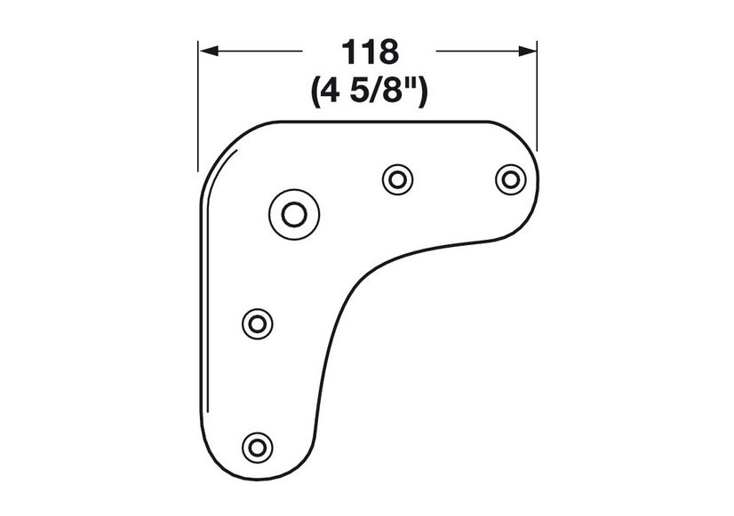Hafele 634.15.092 Mounting Plate, Triangular, 118 mm Height, Aluminum, Polished, Box of 2 Pieces