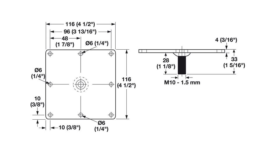 Hafele 635.06.015 Mounting Plate, 60 mm Diameter Component System, M10 Threaded Stem, Steel, Black, Set of 4 Pieces